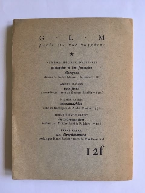Details:1938, 55pp. Paperback, ingenaaid. Leesvouw in de rug en knikje in de linkerbovenhoek. Klein scheurtje in de achterzijde van de kaft (zie foto's). Inclusief en oud Frans krantenartikel over stierenvechten (krant en jaar onbekend).